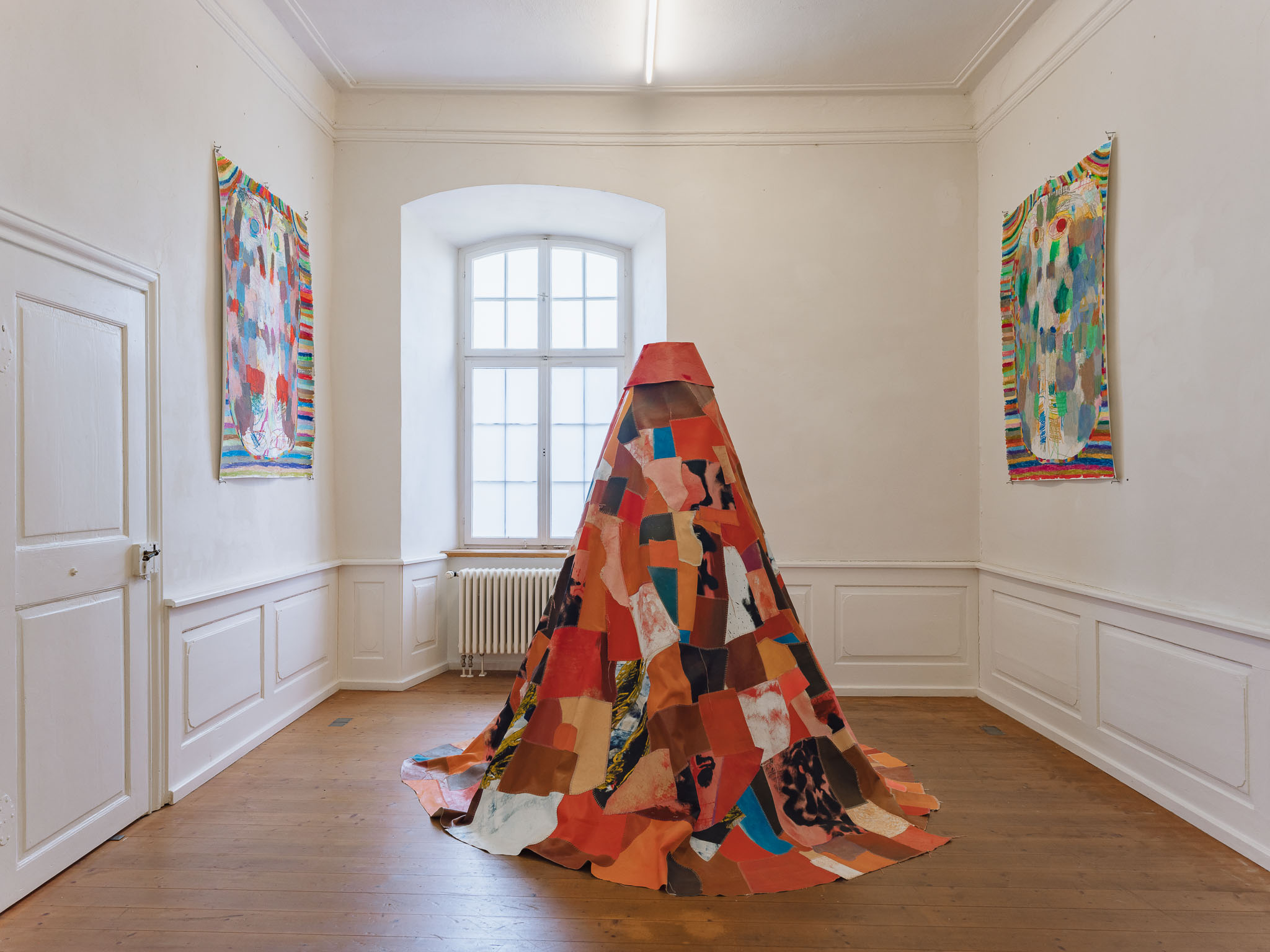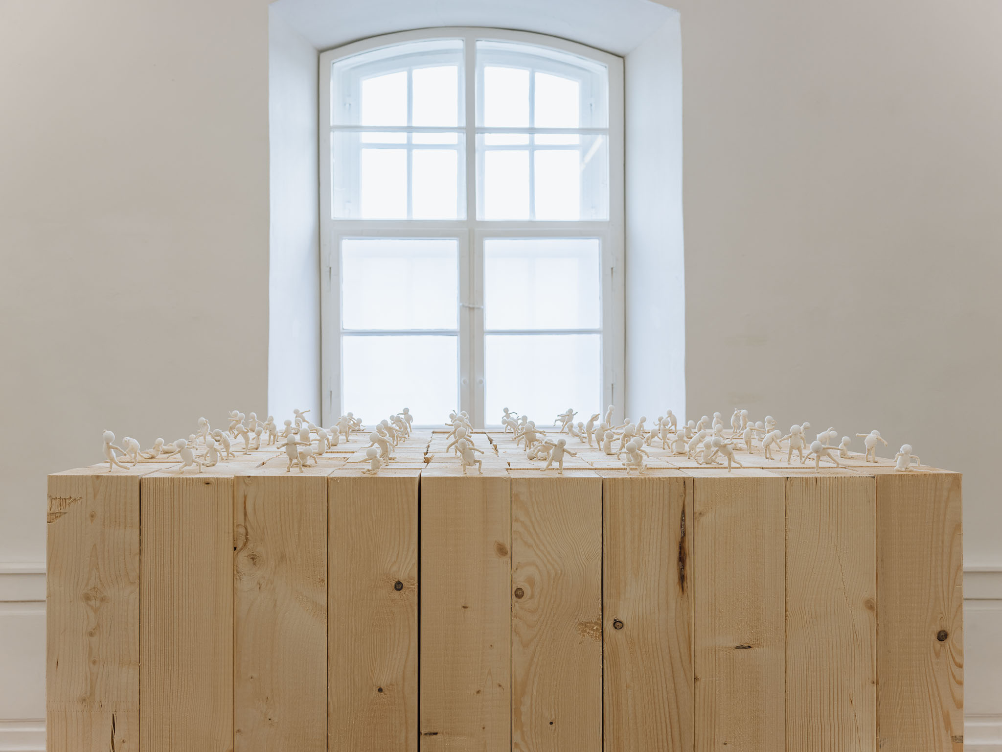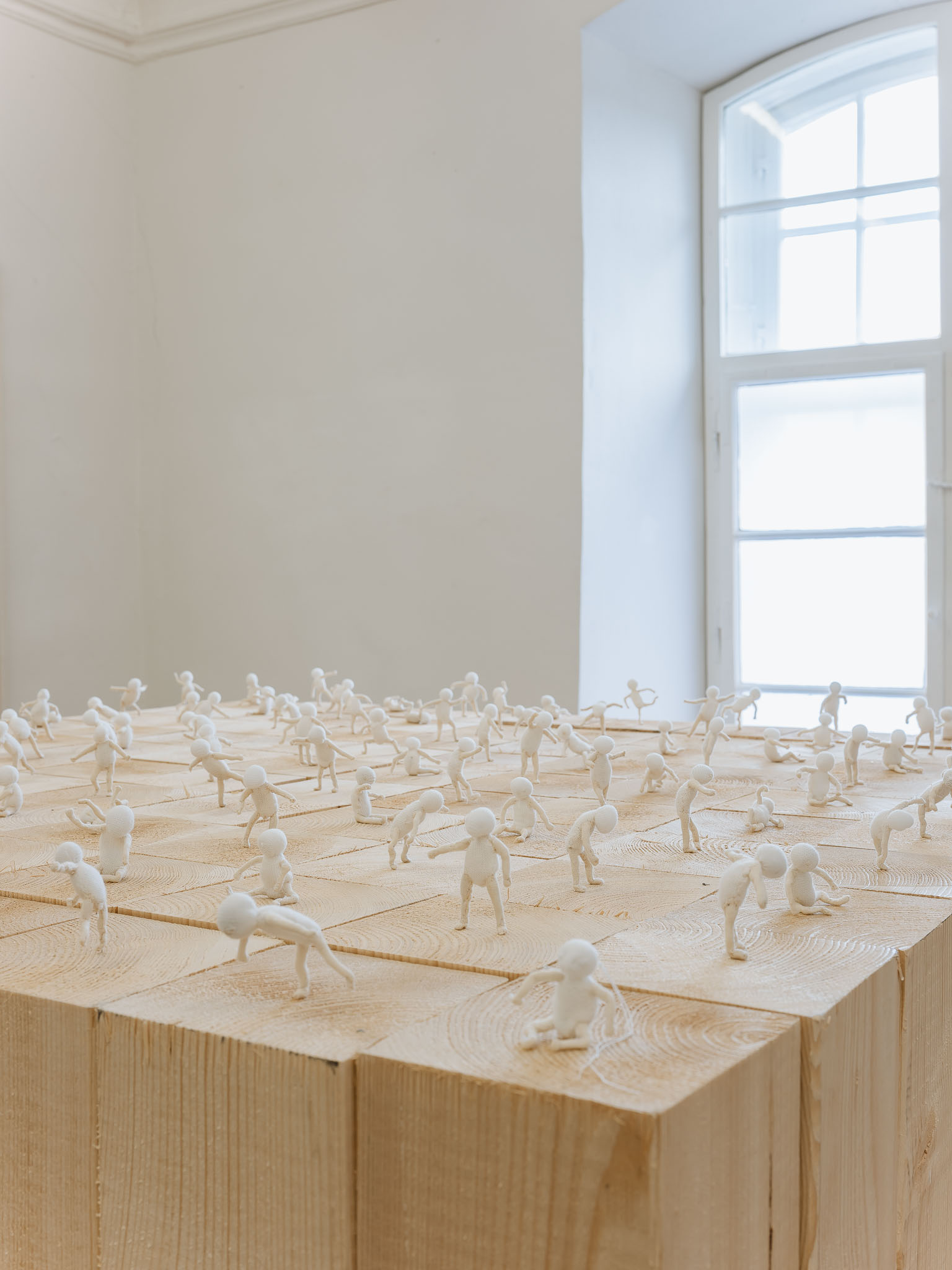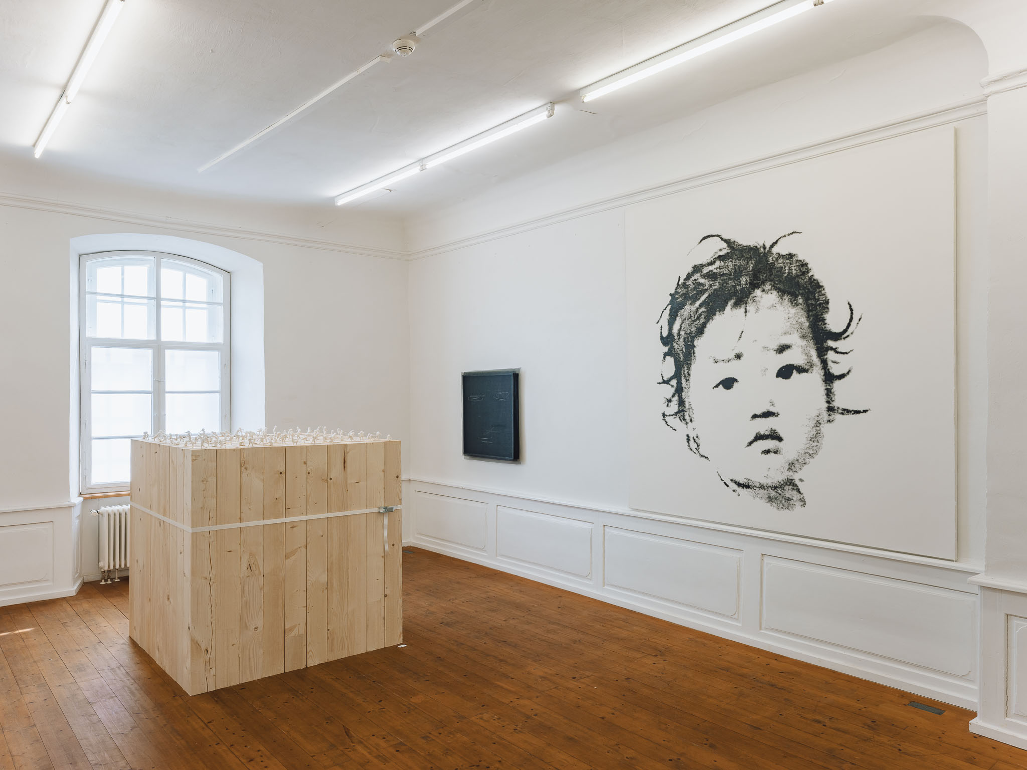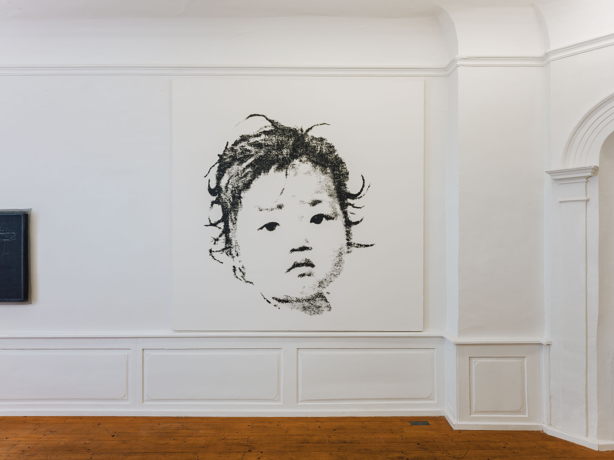 A strictly monochromatic palette keeps the focus entirely on the artwork photography.